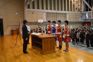選手宣誓は本校ボクシング部主将の阪井拓也君が行いました。