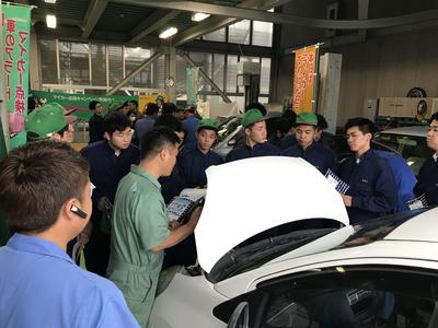 10月18日(金)に天草の自動車整備協会から7名の方を講師としてお招きし、マイカー点検の講習会を実施しました。自動車に興味がある33名の生徒たちが参加し、講師の先生から一つ一つ丁寧に点検のコツを教えていただきました。参加者は、将来、自動車整備士を目指している生徒や、自動車関連に就職予定の生徒もおり、日常点検だけではなく、自動車整備士という仕事についても話を聞く姿がありました。