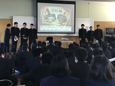 今年度は、1学期が休校であったり、就職試験が伸びたりとなかなか課題研究の時間が確保できないながらも、3年生はそれぞれが研究目標達成に向かって1年間取り組んできました。1年生、2年生も真剣に発表を聞くことができ、来年度につなげることができると思います。
