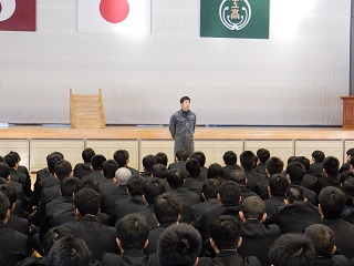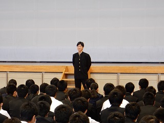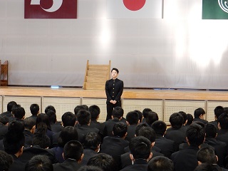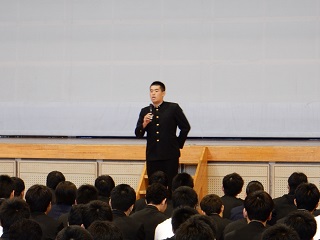 M3A馬田君からは、来週に行われる期末考査に向けての話がありました。3年生は就職試験も終わり、気が抜けている面もあるかもしれませんが、しっかり集中して勉強に取り組んで下さいとの話がありました。