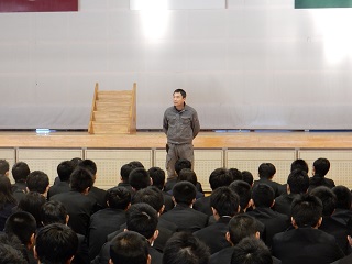 9月の科集会でも受験報告はありましたが、今回も5名の生徒が受験報告をしていくれました。早めの準備が大事、今のうちから頑張っておくべき等の意見が多かったように思います。1・2年生の意識が少しでも高まってくれればと思いました。