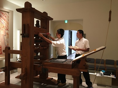 今回は実物の印刷機を見学して寸法を測らせていただいたり、係の方に説明をしていただいたりしました。今回の見学を活かして活版印刷機の再現を目指していきます(^0^)/