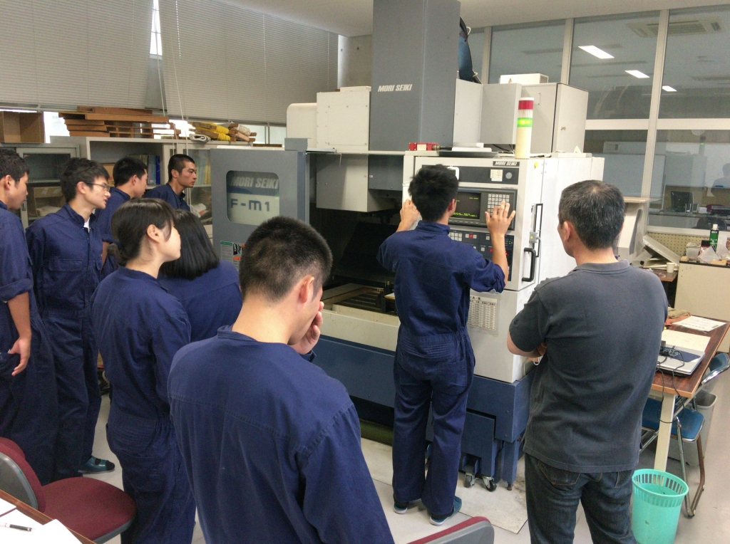 本校卒業生の倉田様を講師に招き、マシニングセンタの基本操作や実技試験の説明について、丁寧に指導をしていただきました。