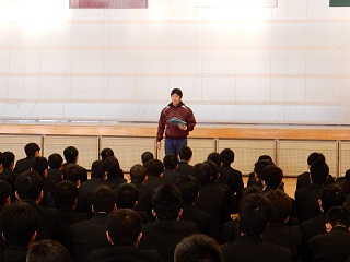 9月の科集会でも受験報告はありましたが、今回も5名の生徒が受験報告をしていくれました。早めの準備が大事、今のうちから頑張っておくべき等の意見が多かったように思います。1・2年生の意識が少しでも高まってくれればと思いました。