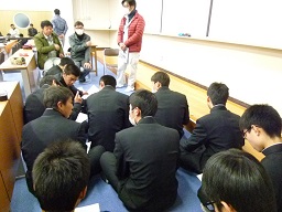 就職内定、そして高専編入が決まった電気科3年生が、後輩(2年生、1年生)に進路体験談をしてくれました。これまでの勉強方法や、会社の仕事内容、面接ではどんなことを聞かれたのかなどのアドバイスがありました。2年生、1年生は真剣な眼差しで聞いていました。