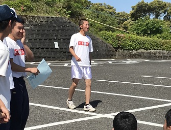 3年生の体育大会応援リーダー、看板リーダーからあいさつ