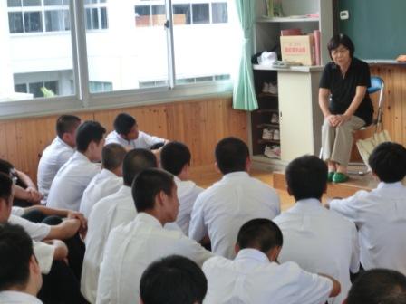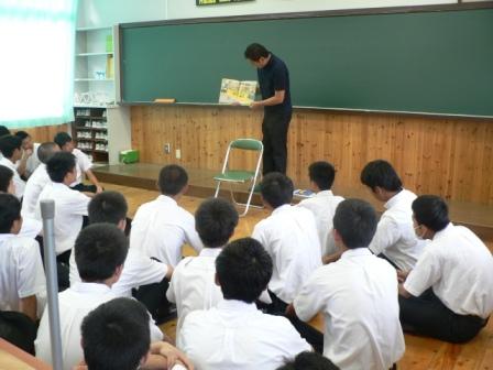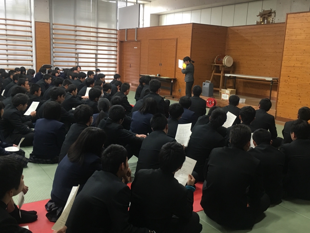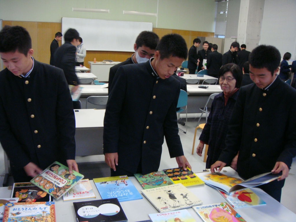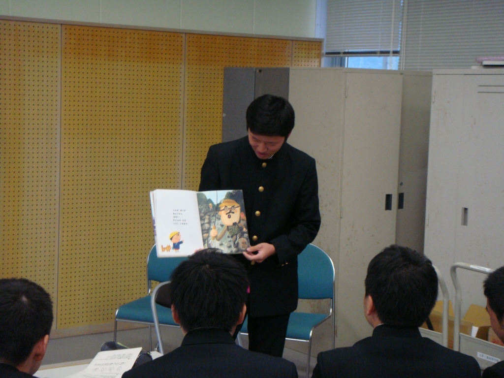 生徒たちは、保育園や小学校の時に読み聞かせしていただいたことを思い出し、なつかしみながら、読み聞かせに聞き入っていました。