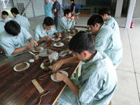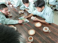 れぞれの個性豊かな絵を描いていました。普段、目にすることのない陶芸を作る過程を知ることが出来、