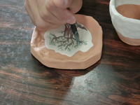 天草の伝統工芸を学ぶため、講師に濱平窯、江﨑様に来校いただきました。江﨑様のご指導の下、様々な作品が完成しました。この作品は濱平窯で焼いていただき、来月絵付けをします。