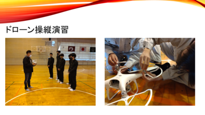 土木科2年がドローンについて、外部講師(株式会社「岳」:代表取締役 荒木圭一氏)による講義を実施していただきました。ドローンの活躍、魅力、今後の発展性などについて講義いただき、興味・関心を惹く内容でした。今後、更にドローンについての知識の幅を広げていきたいと思います。