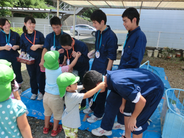 今年度初めての活動として、6月15日に大矢崎保育園さんに遊具棚や道具箱の塗装に行ってきました。生徒たちはサビや塗料に悪戦苦闘しながらも真剣に、丁寧に取り組みました。綺麗になった道具棚を園児たちが『笑顔』で使ってくれたらうれしいですね。・・・・・そして、何と園児たち手作りの『ありがとうメダル』をいただきました!サプライズで私たちのほうが『笑顔』いっぱいになりました。大矢崎保育園の園児の皆さんや先生方に『感謝!』です。