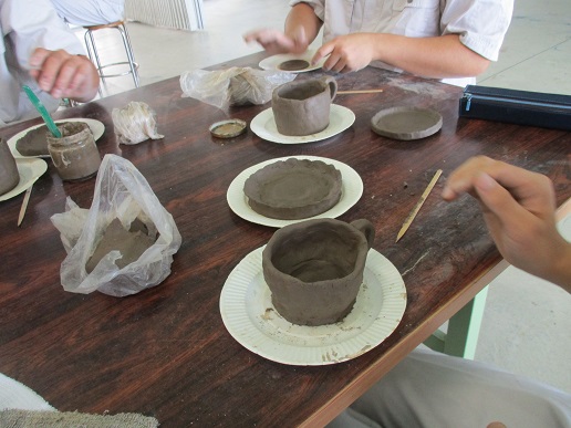 れぞれの個性豊かな絵を描いていました。普段、目にすることのない陶芸を作る過程を知ることが出来、