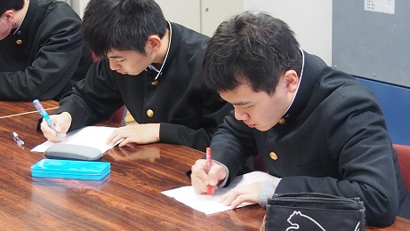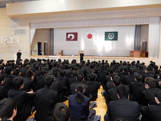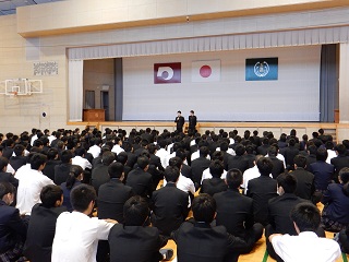 9月の科集会でも受験報告はありましたが、今回も5名の生徒が受験報告をしていくれました。早めの準備が大事、今のうちから頑張っておくべき等の意見が多かったように思います。1・2年生の意識が少しでも高まってくれればと思いました。
