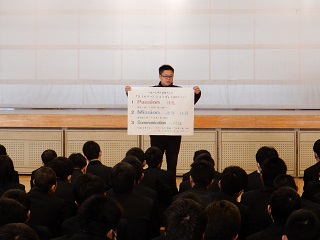 M2B担任の山口先生からは、「変わる」「伝える事」というキーワードの話がありました。「変わる」に関しては、梅田君の話にもあったように「一歩踏み出すこと」が必要。勇気もいるけど「でも、だって」等とマイナス思考では始まらない。まず何でもやってみることが大切という話がありました。また、「伝える」に関しては、人に何かを伝える事は難しい事。事前の準備もいるし、勇気も必要。しかし、訓練をすることで自分の伝えたいことも伝える事ができるようになるから日頃から心がけていこうという話がありました。