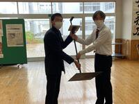 11月10日(水)に機械科3年生「技術ボランティア班」で製作した、アルコール消毒台を近隣中学校へ寄贈いたしました。