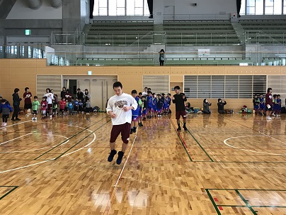 今回の交流はバスケットボール部が取組んでいる「リズムトレーニング」を教えました。