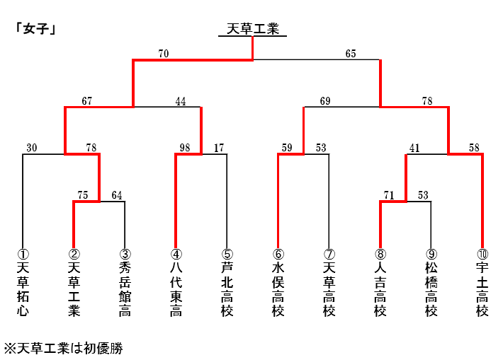 女子は初戦で天草クラブに延長で勝利し、決勝では上天草高校に勝利することができました。
