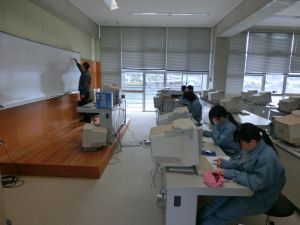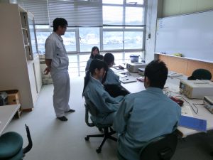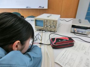 | ★ パソコン実習(パワーポイント) プレゼンテーションの技術を身に付けました。 | ★計測実習(オシロスコープ) オシロスコープの基本的な使い方を学び、 交流波形を計測しました。 |