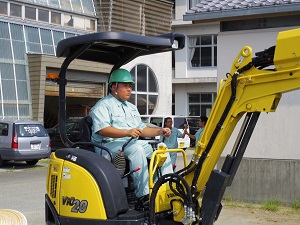 初めて扱う重機に緊張した様子でしたが、講師の方のお話を聞き、真剣に取り組んでいました。