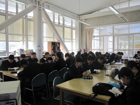いつもの教室での朝の読書とは少し違う雰囲気です。