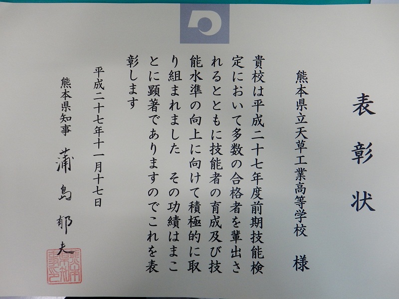 また、本校は技能検定の合格者62名を輩出したということで優秀団体表彰状も授与されました!