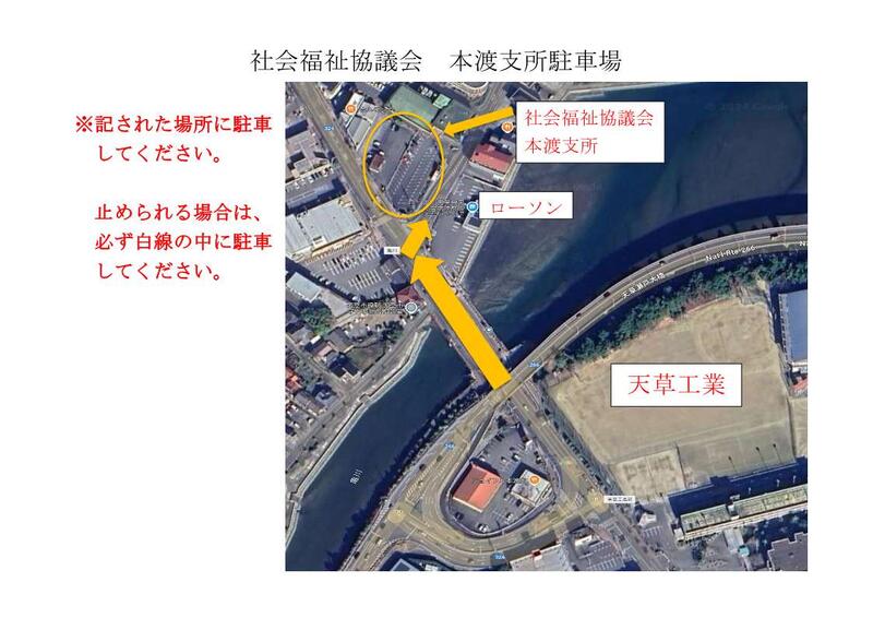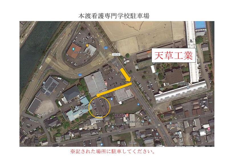 今年度は、本校内に駐車場を設けておりません。本渡看護専門学校駐車場、天草市社会福祉協議会本渡支所、あましんスタジアム駐車場をご利用ください。