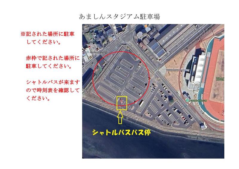 台数に限りがありますので、できる限り乗り合わせでのご来場をお願い致します。あましんスタジアム駐車場に関しては、シャトルバスを準備しております。