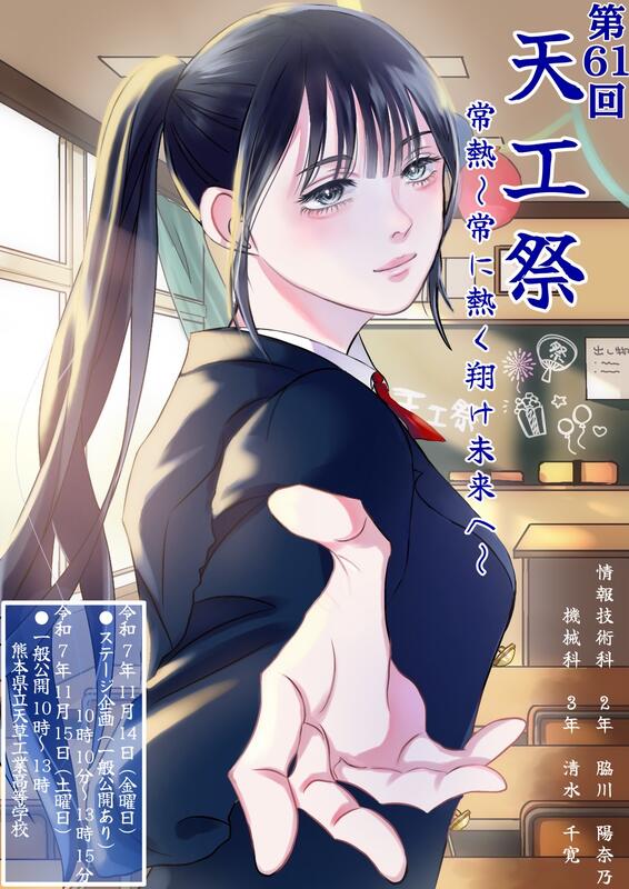 今年度の天工祭の開催については、11月14日(金)、15日(土)に行います。来場の時間に関しては、両日とも9:50分からとなります。