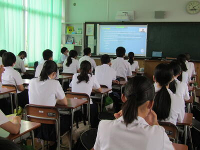 機械科2年A組、情報技術科2年生が八代工業高校で取り組まれているマイスター・ハイスクール事業のオンライン出前授業である「デジタル技術で動く車~インドのITエンジニアSundeepさんの授業~」を本校でも共有することができ受講しました。デジタル技術分野への関心と工学に関する英語力の重要性、そしてグローバル感覚を養うことを目的とされたものです。工業製品である自動車を例に挙げられた英会話での授業内容(通訳有り)で、新鮮さと新しい感覚を覚えることができたと思います。