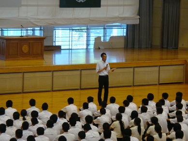 2学期始業式 投稿日時 : 2018/09/03 学校生活編集者 9月3日(月)、2学期の始業式が行われました。 校長訓話この後、教務部、進路指導部、生徒指導部の先生方からのお話がありました。 生徒のみなさん、2学期もいろいろなことに挑戦してください。