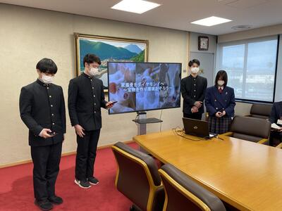 1月18日(水)に天草市長を表敬訪問し、高校生ビジネスプラン・グランプリでベスト20に選出されたことを報告しました。
