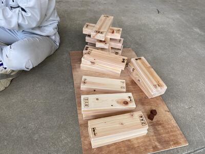 ビッグジェンガも子どもたちに遊んでもらえるように丹精込めてつくりました。