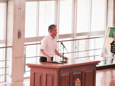 校長訓話(一部抜粋):長い夏休みが終わりました。皆さん、充実した夏休みを過ごすことができましたか?今年の夏休みは、これまでに経験のない出来事がありました。8月の記録的大雨です。上天草市や天草市では、浸水やがけ崩れの被害があり、皆さんの中にも大雨による被害を受けたという人がいると思います。心よりお見舞い申し上げ、1日も早い復旧をお祈りいたします。