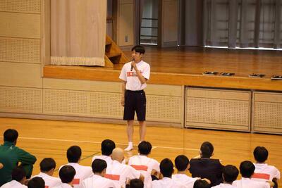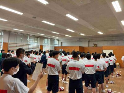 体育大会に向けて、結団式が行われました。各団の団長が挨拶と共に、体育大会への意気込みを語りました。