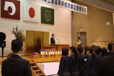 第53回卒業式が行われ、3年生計183名が天草工業高校から巣立っていきました。