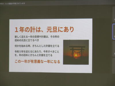 校長先生より新年の挨拶を冒頭に、「2023年 何事にも果敢に挑戦」と題して主に以下のお話がありました。