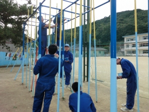 技術ボランティアを行っています(機械科3年) 投稿日時 : 2015/11/13 学校生活編集者 機械科3年生課題研究の時間に「出張!!天工奉仕隊」と題してボランティア活動を行っています。これまでに近隣の保育園や小学校、高等学校の遊具塗装や看板補修、焼き杉プレート作り、ミニゴール補修などを行ってきました。これからも天草の人たちの笑顔のために頑張ります。