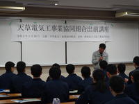 2月18日(火)の5、6限目、昨年に引き続き今年度も天草電気工事業協同組合の方々から、本校電気科2年生の生徒たちを対象に出前講座を実施して頂きました。