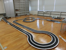 部員全員の願いだった立体交差も作りました!坂道の精度もなかなか良いようです。これで対戦形式の競技練習ができるようになります。出来上がったパーツを置いていくと自作の限界でしょうか、少し誤差がありました。コースを継ぎ足す必要がありましたが、残ったアクリル材で補うことができました。