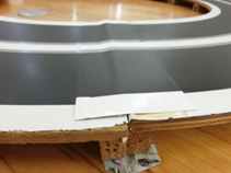 本校では自作のコースを使用してマイコンカーラリー大会に向けてマシンを製作・調整しています。このコースは10年程前の先輩方が製作されたコースで、大量の練習や年数が経ち、コースシートの劣化やコース材にベニヤ板を使用しているため、板が反ってしまい段差がでてきました。