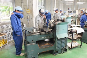 昨日より技能検定3級技術指導(旋盤)が行われています。ものづくりマイスターの加藤正さんを講師にお迎えし、7月の検定本番に向けて技能を高めています。