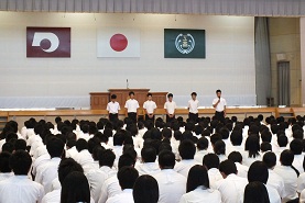 陸上競技部が来週から行われる南九州大会(沖縄)に出場するため壮行会が行われました。