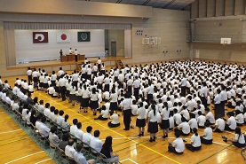 新任式後に2学期始業式も行われました。校長先生から「うまくいかないこともあるかもしれないが、今年度の目標である『未到チャレンジ』を達成するためにも継続して頑張りましょう」というお話がありました。継続は力なりといいます。最後まであきらめずに取り組んでいきましょう。