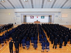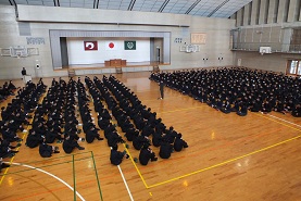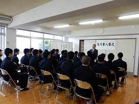 まだ1年生は入学前ですので、新2年生と新3年生のみで行われました。校長訓話の中で、『5S活動の徹底』、『学業に励むこと』、『自分を大切にし、相手を思いやる』という3つの話がありました。新たな目標を持ち、新たな気持ちで新年度も頑張ってくれればと思います。