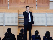 まずはじめに新任式が行われました。つい先日には14名の先生方とお別れしましたが、その後には新しい出会いがまっていました。今年度は以下にあげた計15名の先生方をお迎えしました。様々な学校で経験を積まれてきた先生もいらっしゃれば、今年度から初めて働くという先生までいらっしゃいます。