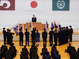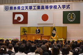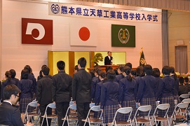 真新しい制服に身を包んだ1年生184名が本日入学してきました。緊張した様子で体育館へ入場してきた1年生たち。きっと様々な目標をもって天草工業に入学してきたことでしょう。その気持ちを忘れずに3年間しっかり勉強や部活等に励んでくれることを願っています。