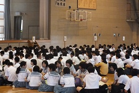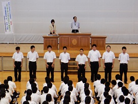 という話がありました。また、「45日間の長い休みに入るので、部活動に励むのもいいが読書や家の手伝いもしてほしい。そして、普段やれないことに挑戦して、知的好奇心をみたすのもいい」ということもおっしゃいました。