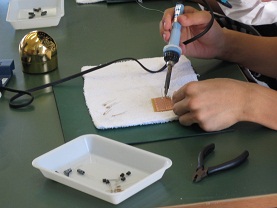 図書館が開いていることを知らせる表示板を、ハンダ付けしてLEDで光らせる。