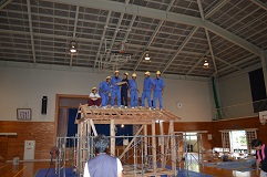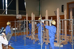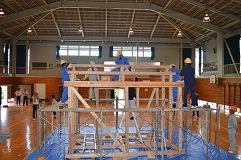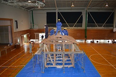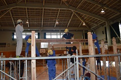 足場を組み立て、木材部品の各パーツを組み合わせる作業を行い、電気配線も実際に行うことができました。学校ではなかなかできない貴重な体験をすることができました!