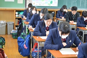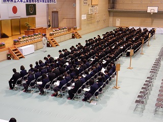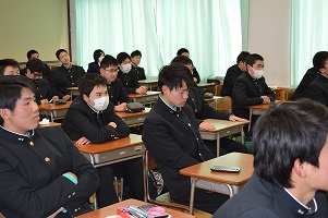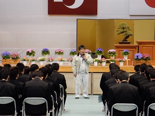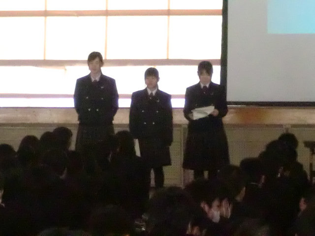 予行終了後、3年生の同窓会入会式も行われました。同窓会会長の江﨑さんが来校され、同窓会についての話等をされました。